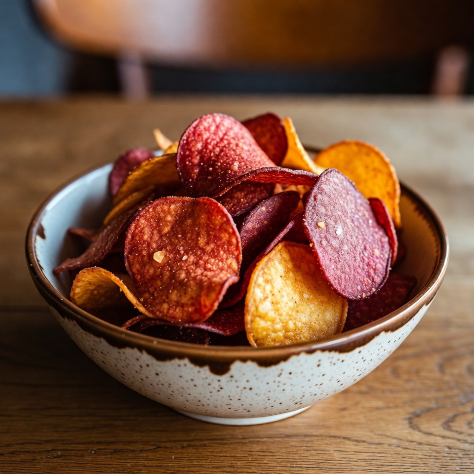 9. Podawanie: Chipsy z buraka serwuj od razu – idealnie pasują do dipów, sałatek lub jako samodzielna przekąska.
