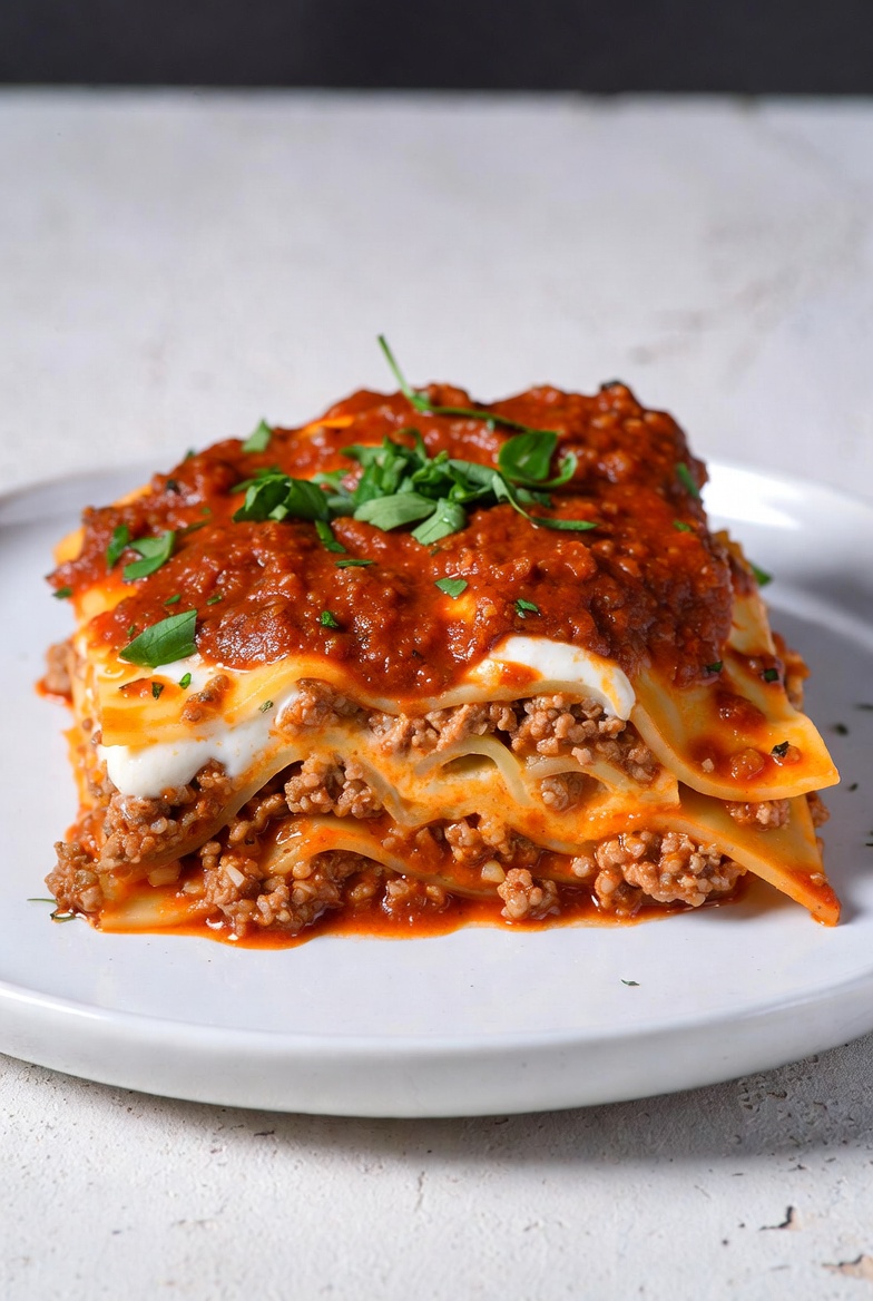 Po upieczeniu, pozwól lasagne odpocząć przez około 10 minut przed krojeniem. To kluczowy etap – danie „odpoczywa”, co zapewnia idealne połączenie smaków.