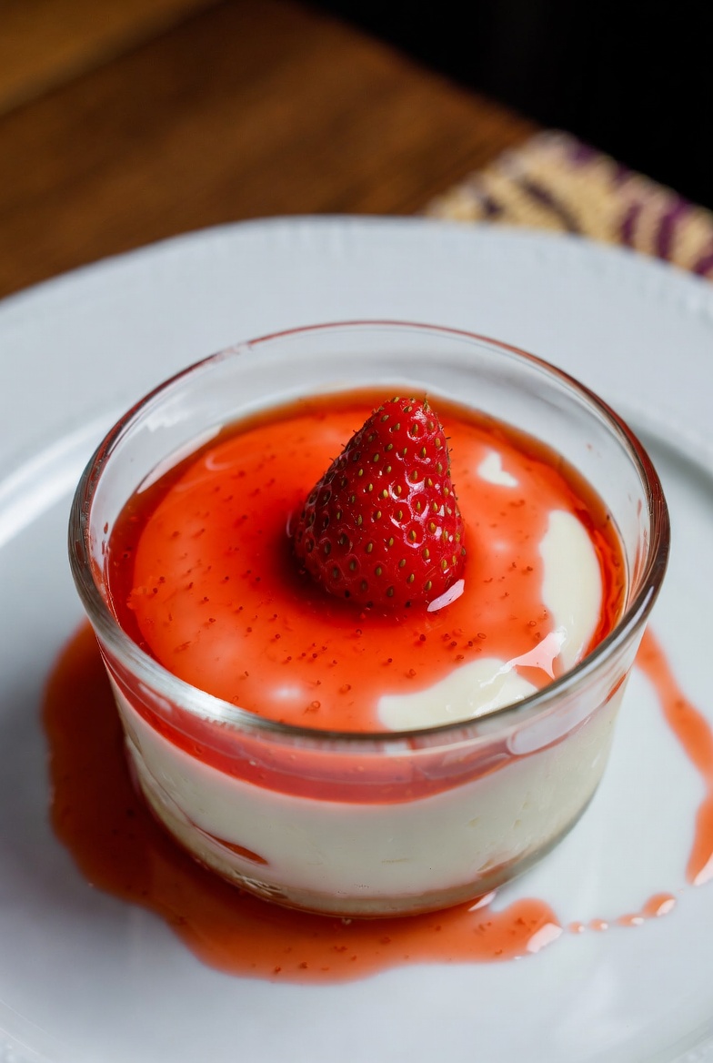 5. Sezonowość składników: W połączeniu z musem truskawkowym, który można przygotować zarówno z świeżych, jak i mrożonych owoców, panna cotta to doskonały sposób na wykorzystanie sezonowych owoców. Truskawki dostępne latem oraz ich mrożona wersja zimą sprawiają, że jest to deser idealny na każdą porę roku.
