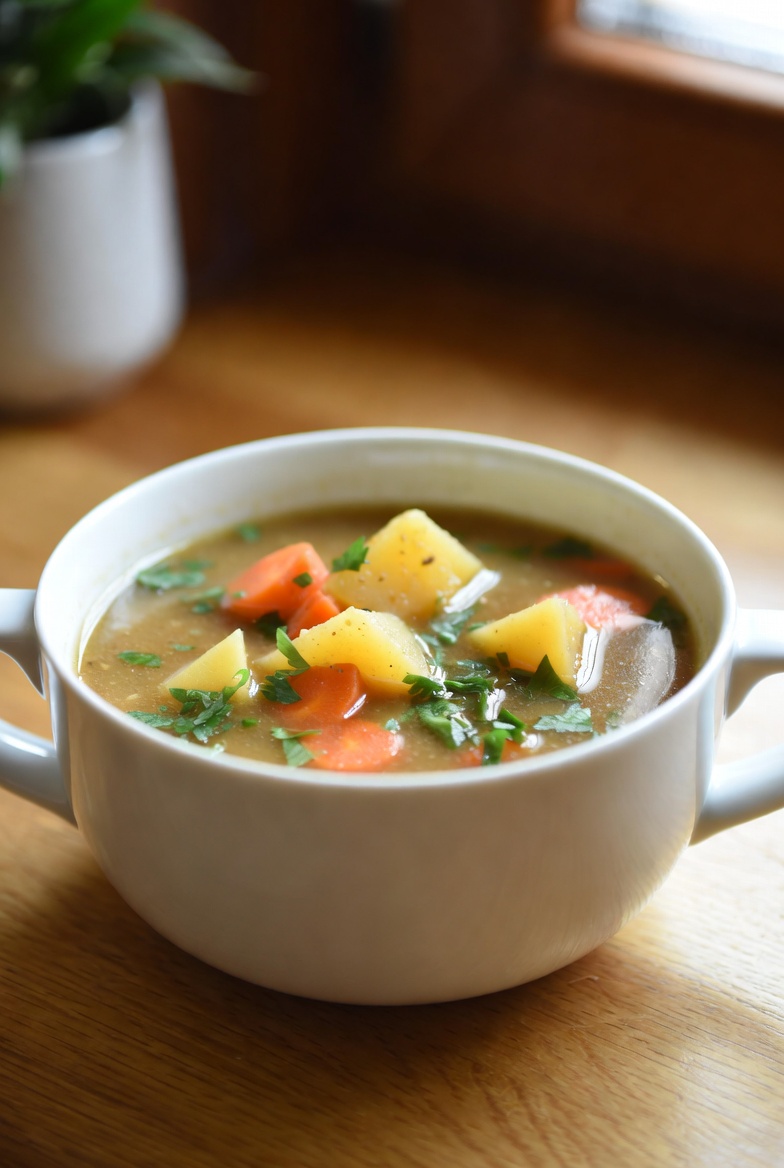 Zupa jarzynowa z mięsem – Dodaj pokrojone w kostkę mięso (np. kurczaka czy wołowinę) na początku gotowania.