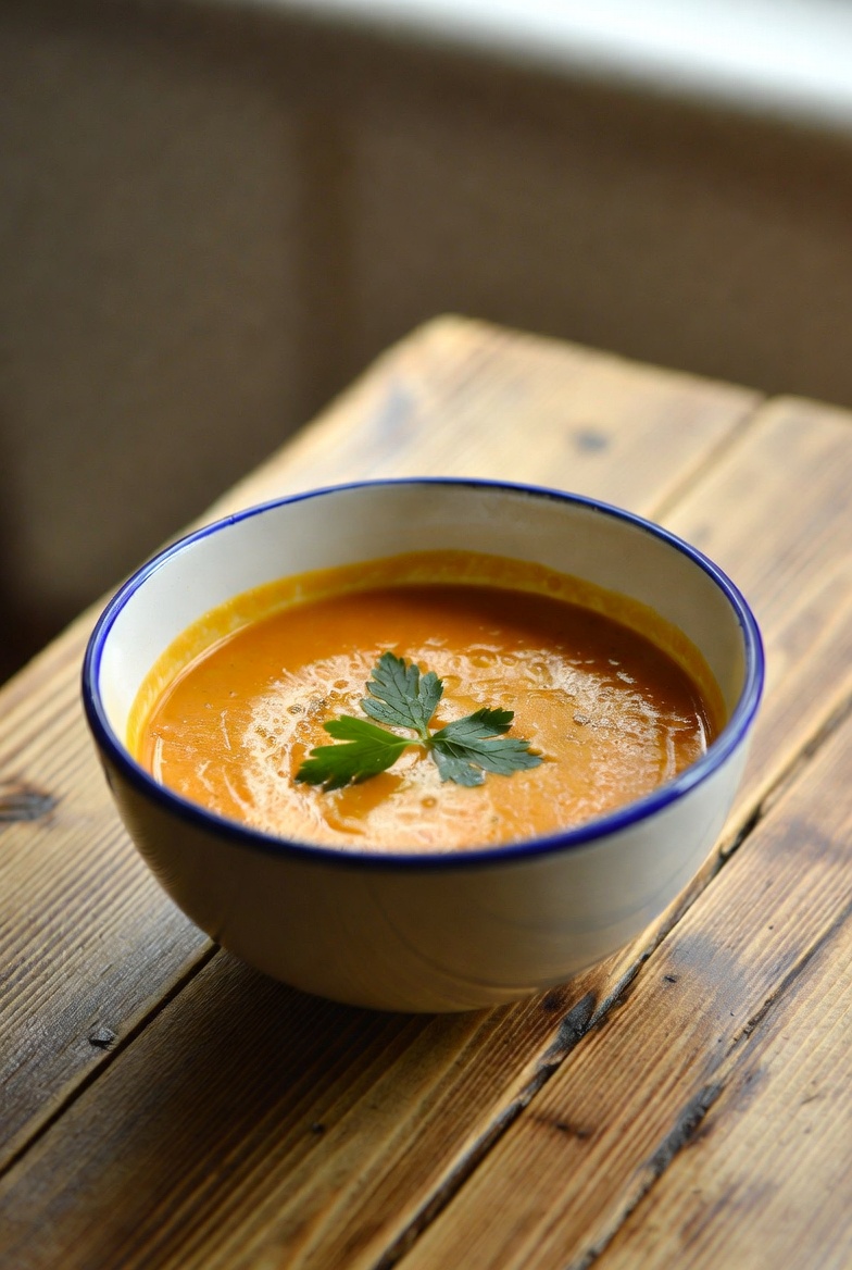 Krem dyniowy z imbirem: Intensywna obecność imbiru nadaje zupie pikantności i rozgrzewającego smaku.